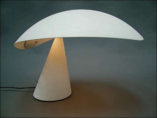 Rare table lamp designed by Masayaki Kurosawa for Artemide, Italy 1965. White textured metal base with an adjustable pivot shade.